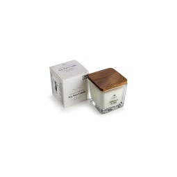A candle in a black tinted glass container. Soy wax is a natural vegetable wax made from soybean oil, a renewable natural resource. It is environmentally friendly and a natural alternative to paraffin or beeswax. Fragrances – our essential oil blends or carefully selected high-quality aromatic...